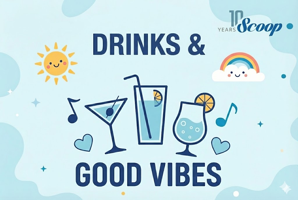 16 Kolleg:innen 10 Jahre SCOOP Partytime Food & Drinks
